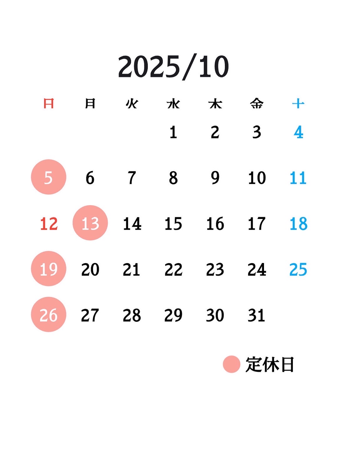 10月の営業カレンダーです😊